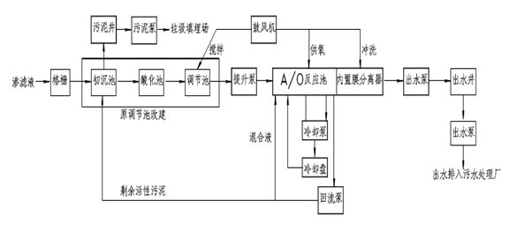 图3-2 渗滤液处理改造工程工艺流程